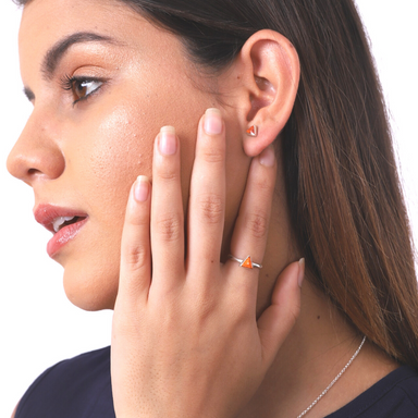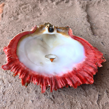 Triangular silver 950 and Orange Spondylus adjustable ring