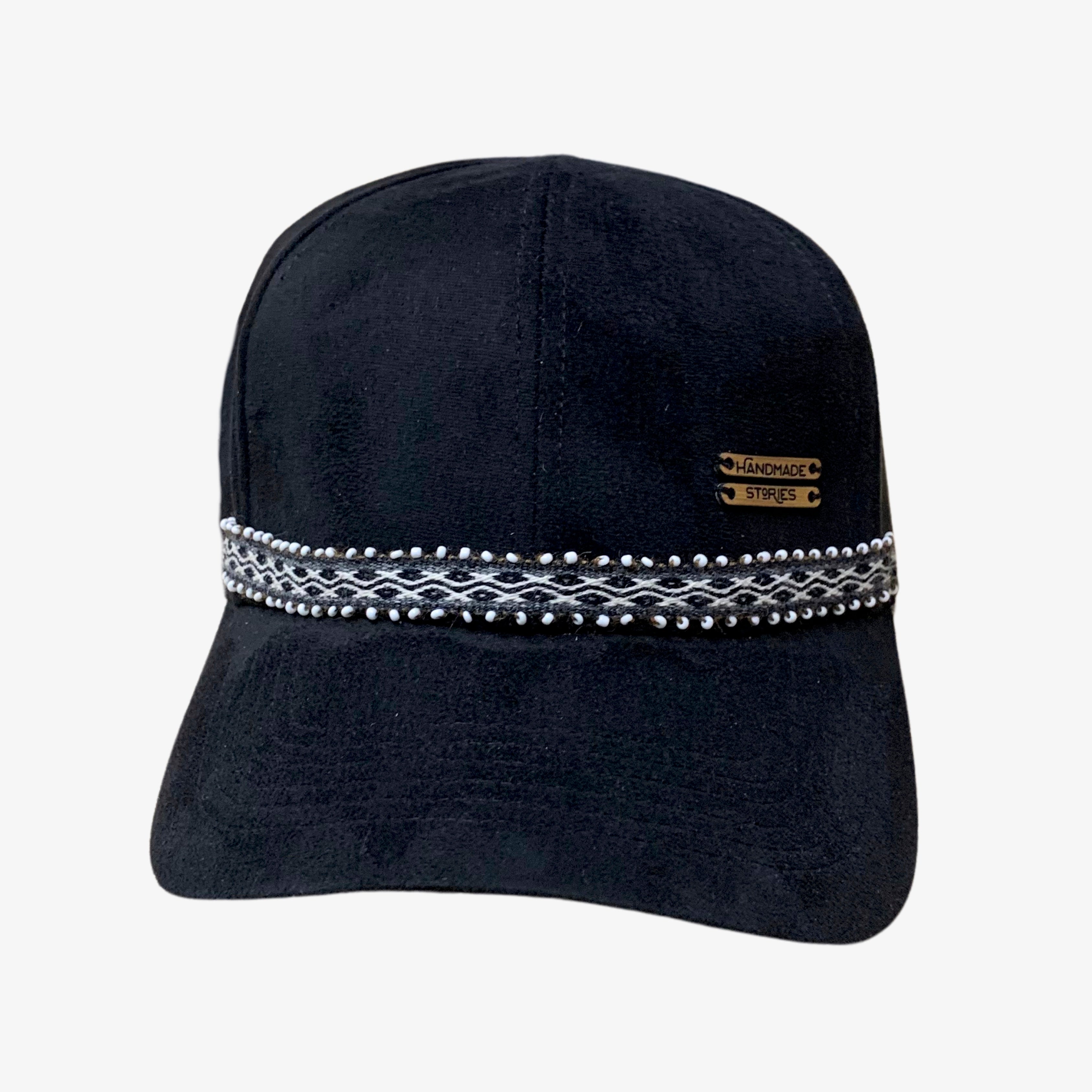 This black suede cap offers the perfect blend of style and comfort. The soft suede material and unique handwoven Andean motifs make it stand out from the crowd. Its adjustable size ensures a perfect fit for any head. Upgrade your hat game with this stylish and one-of-a-kind cap!