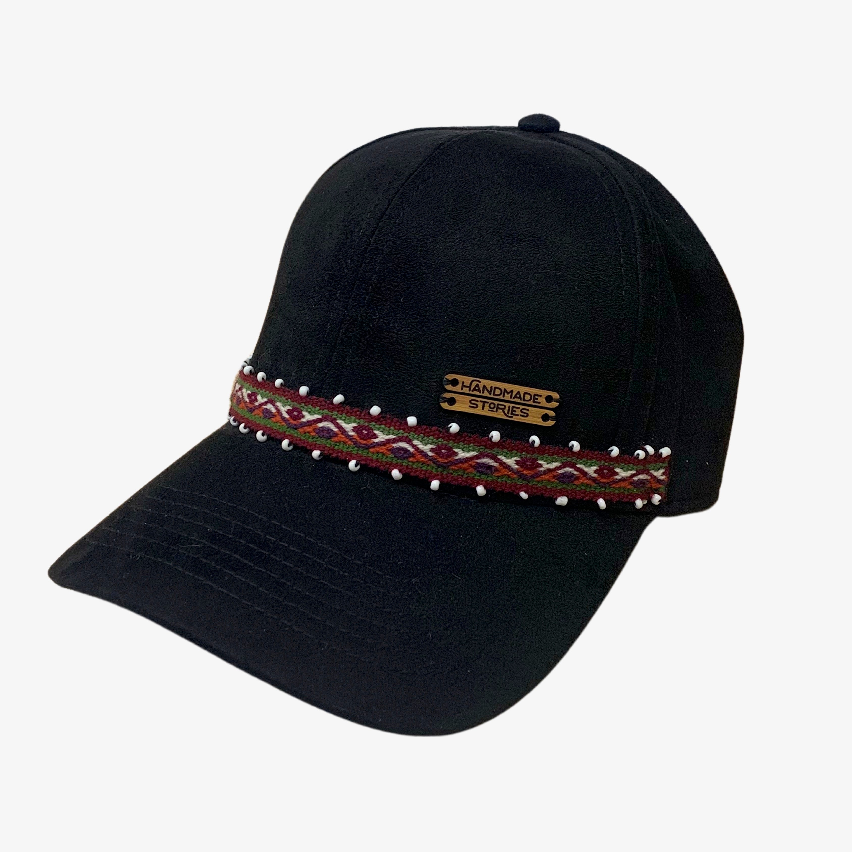 This black suede cap offers the perfect blend of style and comfort. The soft suede material and unique handwoven Andean motifs make it stand out from the crowd. Its adjustable size ensures a perfect fit for any head. Upgrade your hat game with this stylish and one-of-a-kind cap!