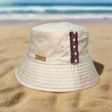 Make a statement with our beige organic cotton bucket hat! Not only is it stylish with unique motifs and eyelets for breathability, but it's also m...