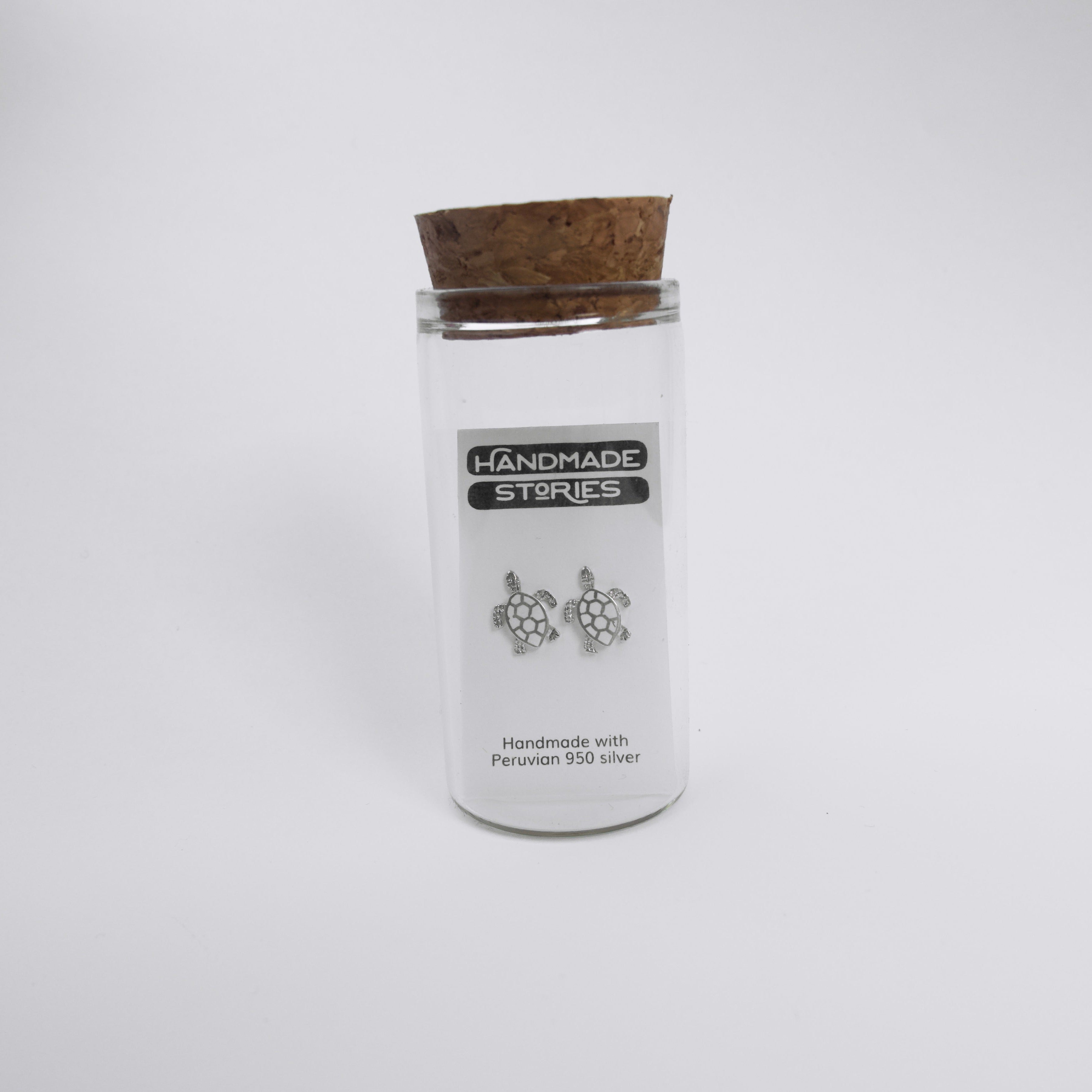 These turtle-shaped studs, handcrafted with Peruvian silver 950 and filled with resin, encapsulate the timeless allure of sea life. Delicate yet captivating, these earrings mirror the grace and wisdom of sea turtles.