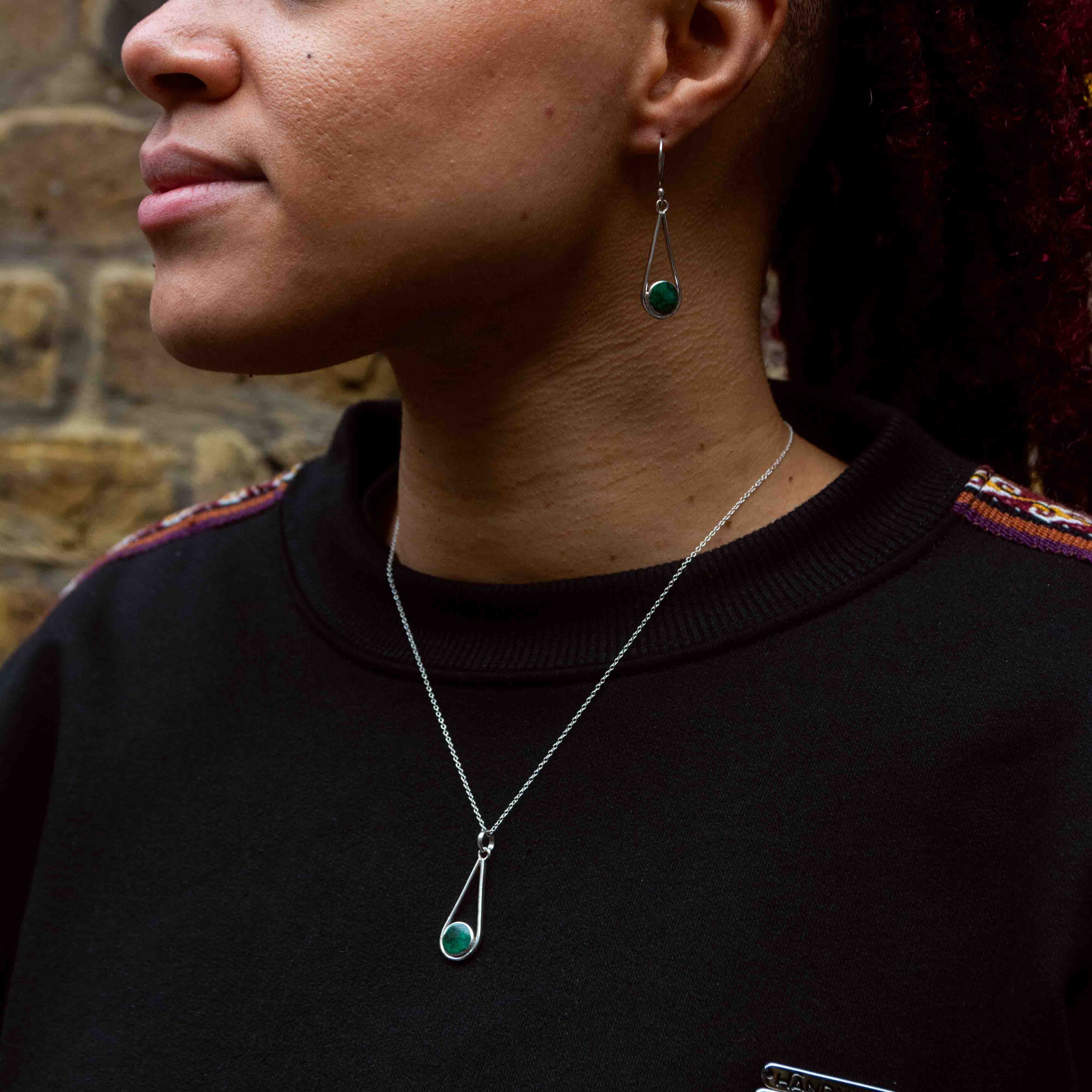 Experience the calming energy of chrysocolla with our stunning silver 950 drop necklace. This talisman of serenity and understanding promotes communication and emotional healing, making it not just a fashionable accessory, but a powerful tool for inner peace.