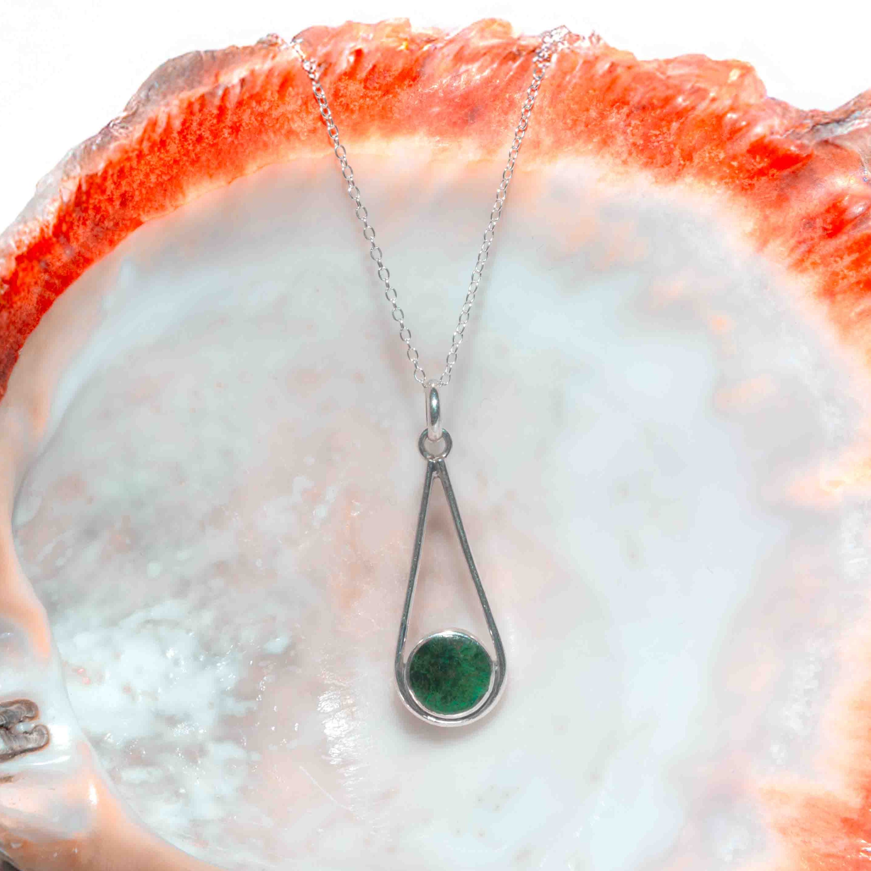 Chrysocolla and silver 950 drop necklace
