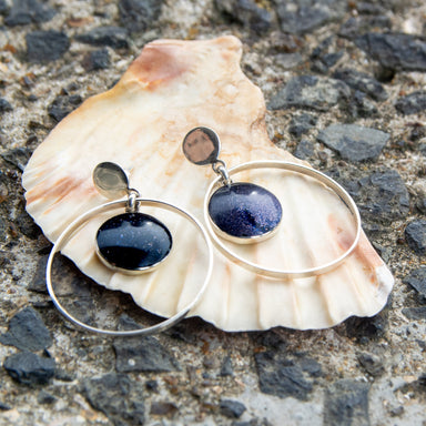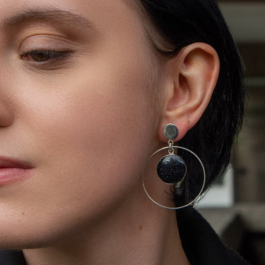 Experience cosmic elegance with these unique earrings. Handcrafted with precision, the genuine Peruvian silver 950 circles elegantly frame the shi...