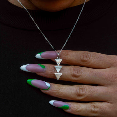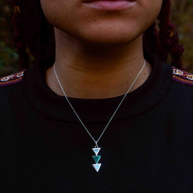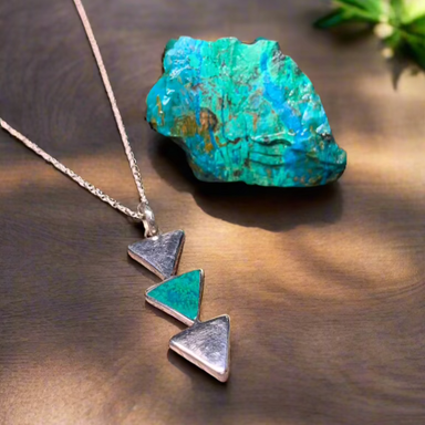 Elevate your style with this handcrafted Chrysocolla three triangles Peruvian silver 950 necklace. The soothing Chrysocolla stone brings hope and...