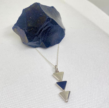 Add a touch of glamour to any outfit with our handmade Blue sandstone three triangles Peruvian silver 950 necklace. The three triangle design, craf...