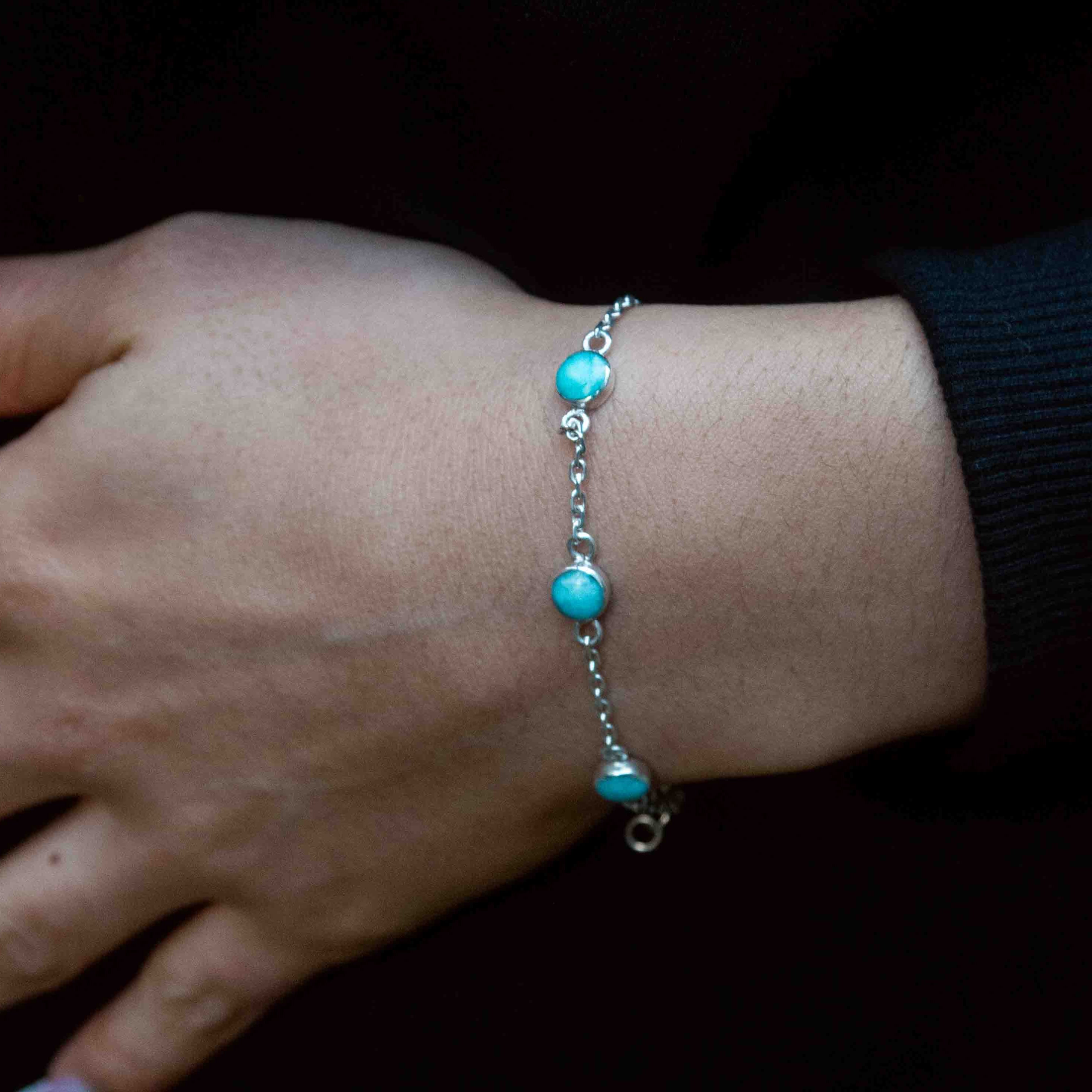 Experience serenity and sophistication with our handcrafted Amazonite and silver 950 multiple stones chain bracelet.