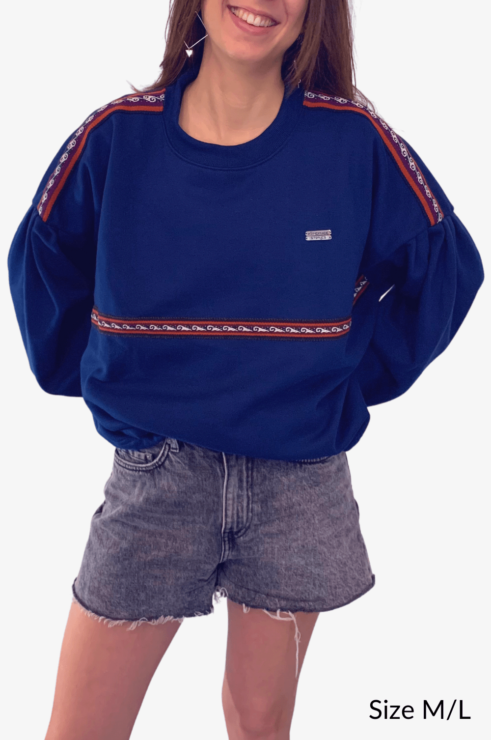 Blue oversized sweatshirt with Peruvian motifs
