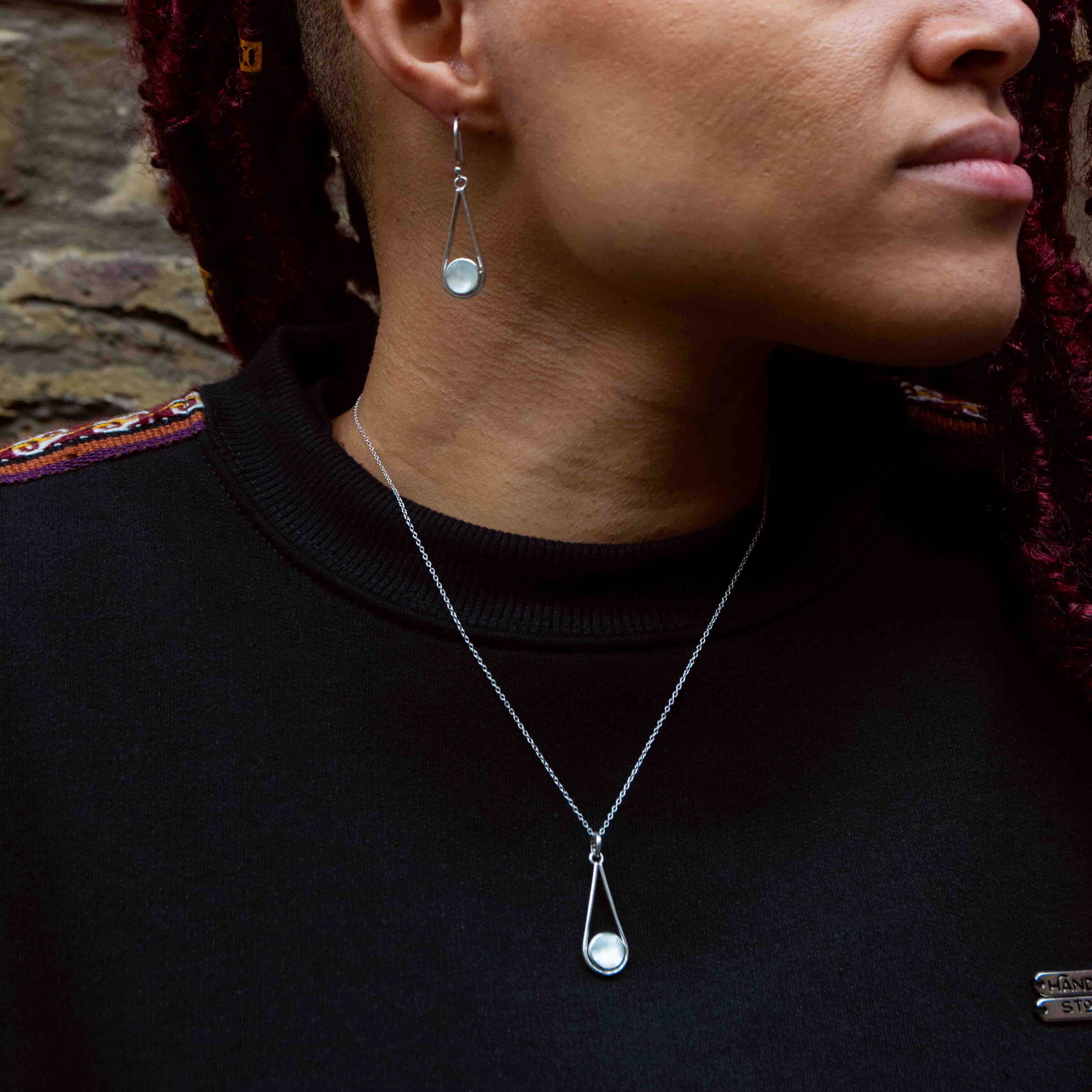 Discover the calming energy of the moon with our Mother of Pearl and Silver 950 drop necklace. Made with genuine Mother-of-Pearl stones, known for its soothing properties and ability to promote emotional balance and inner peace. Embrace the serenity of nature and elevate your style.